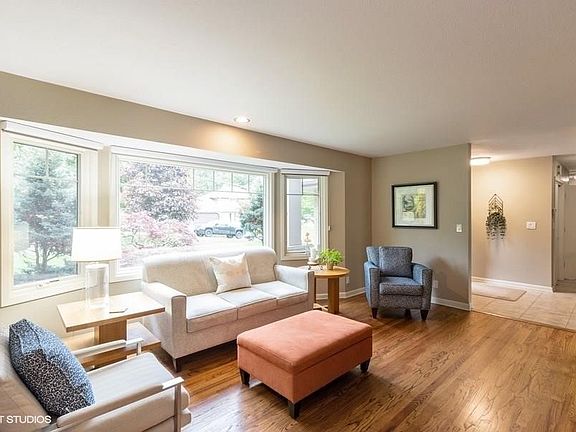 Beautiful mid-modern ranch with incredible park like setting. Three car detached garage as well as a two car tuck under is perfect for the hobbyist! Mid modern vibe all the way through with arched "A" frame windows overlooking private yard with mature trees. Spacious deck , walk out basement, there is a lot to love