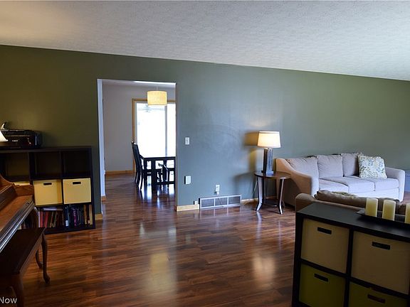 This stunning brick ranch is nestled deep in a low traffic neighborhood, making for a beautiful and quiet place to raise your family. Once you’ve taken in the large yard and concrete driveway, step inside the warm foyer and into a bright and spacious main living room. Rich, hardwood style flooring fills the home as it spills into the dining room before making its way down the hall. The recently remodeled kitchen is gorgeous with high polished stone countertops, and light ash colored flooring. Stark white cabinets fill the room while a stepped ceiling shines recessed lighting down to the floor. An inviting dining area sits nearby with outdoor access through sliding glass doors. Making your way down the hall, a large revamped full bath boasts a handsome double vanity, swept tile flooring and shower. Each of the three bedrooms offer carpeted flooring and cozy living space. The large master bedroom offers an additional full private bath styled in welcoming colors. A full basement provides