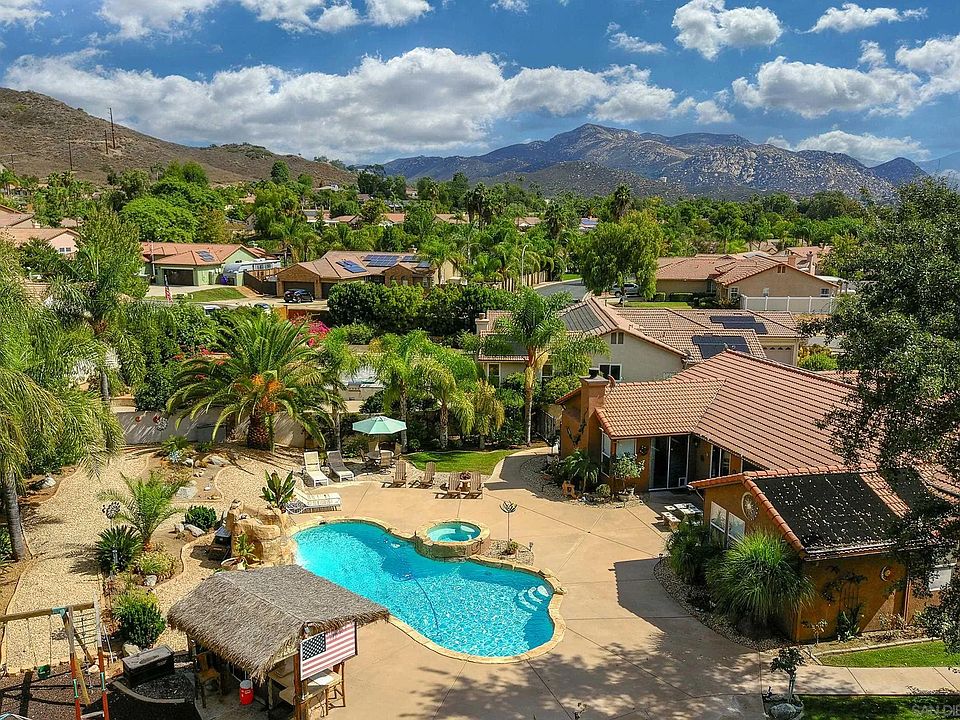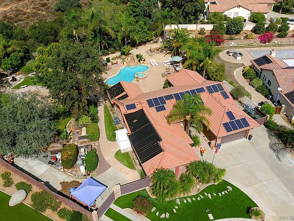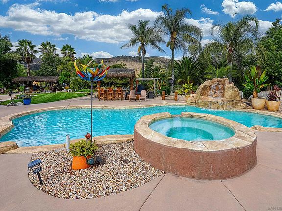 ENTERTAINER’S DELIGHT on this single story Rancho San Vicente home on a cul-de-sac location. This beautiful home is in a highly sought-after community and offers an open and spacious floorplan. The backyard is like walking into your own private oasis with inground pool/spa and lush mature landscaping that is serviced by your own well! This oversized backyard also offers a large palapa with plenty of seating, built-in bbq and fire pit that round out some of the amenities this amazing backyard offers. Owned solar is also another benefit of this home. This home offers 3 bedrooms and office/den, 2 baths and a 3 car garage and RV parking. The kitchen is a cook’s delight with double ovens, granite counters, upgraded cabinets and offers an abundant amount of storage. The kitchen is adjacent to the family room which offers a cozy fireplace. The living room/dinning room is light and bright and offers stunning views of the backyard. The master suite is spacious with walk-in closets and an oversized master bath that offers a large soaking tub and dual vanities and access to the backyard. Endless views from the backyard as you are adjacent to the 650 acre Simon Open Space Preserve. Custom front doors, plantation shutters in the office, whole house vacuum system, outdoor sauna and too many wonderful details to mention. Come see all this beautiful home has to offer before it’s gone!