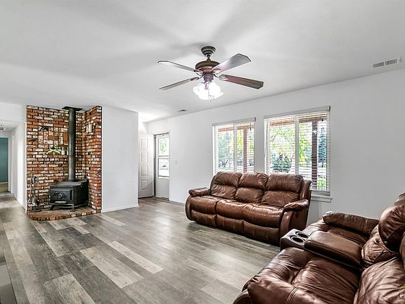 Bear Valley Gem!! This 1525 sqft, 3BD/1.75BA home sits on a double lot at the end of a quiet cul-de-sac in the residential, golf course area. Inviting living room with picture windows and laminate flooring, wood burning stove with brick hearth, spacious dining area, Open kitchen with eat-up bar and newer range/oven. Bright and roomy main bath, newer carpet in bedrooms, master suite with dual closets and sitting room addition to both bedroom and bath. Indoor laundry room, just off 2 car attached garage with one over-sized parking space. Separate 2 car detached garage with workshop area, dog run, apple tree and covered patio for enjoying those afternoon sunsets. Short distance to golf, tennis, swimming and the Oak Tree Country Club. On natural gas and sewer. Come see all this cute and quaint property has to offer !!