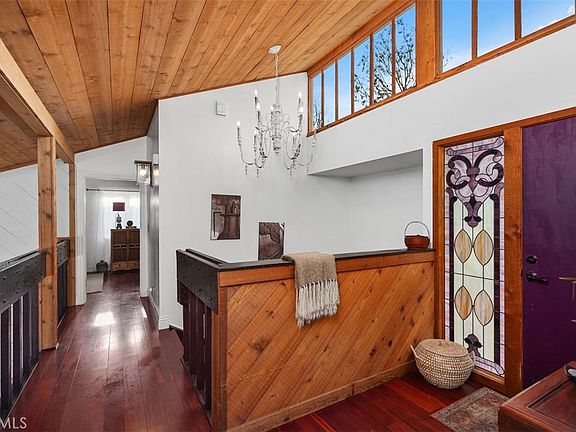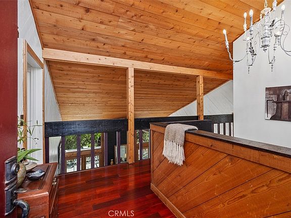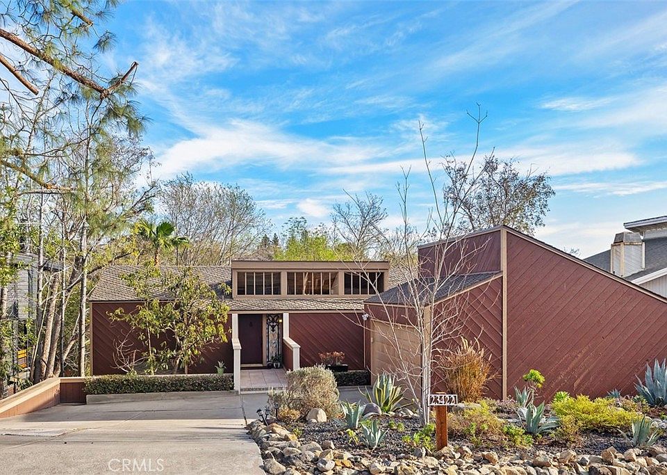 Nestled behind the gates of the prestigious Coto de Caza community, in The Village, sits 23422 Via Alondra—a custom 3-bedroom, 3.5-bathroom home. Upon entry, natural light pours through two-story ceilings and expansive windows, accentuating cherry wood floors that flow throughout. The open hallway creates a dramatic view of the eclectic living area below. The top level features two secondary bedrooms, each with private en-suite bathrooms, offering comfort and privacy for family and guests. The main level boasts a spacious living room with vaulted wood ceilings, a cozy fireplace, and French doors opening to an expansive deck—perfect for indoor/outdoor living. The private backyard oasis offers panoramic views of open terrain, ideal for relaxation or entertaining. The kitchen is equipped with granite countertops, stainless steel appliances, and a stained-glass door to the outdoors. Adjacent, the dining room opens to the deck, providing breathtaking treetop views. The primary bedroom is a serene retreat with vaulted wood ceilings, a walk-in closet, and French doors leading to the deck for stargazing. The updated en-suite bathroom includes a spa-like jetted soaking tub and a walk-in steam shower.