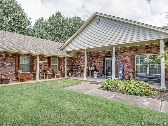 Beautiful remodeled craftsman style home located in a secluded rural setting between BA & Coweta!Open concept living 4 spacious bedrooms, 2.5 baths, two flex rooms/ large living w/ converted garage game room. New granite counter tops in kitchen w/ under cabinet lighting, new paint, new flooring, new carpet, Faux stone bar, breakfast nook & dining area! Lg laundry w/ sink, covered porches, 10x10 F5 rated concrete safe room, fully decked attic for second story to be finished, wood burning buck stove fireplace with new chimney flue, detached 3 car garage, 40x60 shop including (3) 14' overhead doors with full length lean-to, RV hookups fully insulated w/open cell foam, pond, horse permitted fenced on all sides, Outdoor Fire pit & swing in grain silo perfect for outdoor relaxing! This home has all the amenities you need!