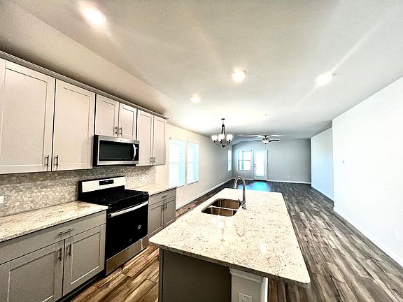 Oversized backyardOpen concept floor planGranite countertopsSplit bedroomsCovered back patioSmart home systemBrand-new stainless-steel appliances