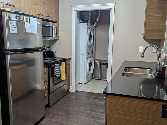Beautiful 2 bedroom and 2 bathroom condo with 2 underground parking spots and a storage unit for rent in downtown Port Coquitlam. The bedrooms are at opposite sides of the unit for optimum privacy with an open concept living and kitchen area in between. The kitchen features a quartz countertop and a breakfast bar with modern stainless-steel appliances. The laundry room includes built in additional storage. Large windows and a cozy fireplace make the living area an inviting place to relax. Building amenities include an exercise room and an event room. This condo is situated in downtown port coquitlam, just steps away from the bus stop, shops, newly built community center, schools, library, parks, poco trail, off leash dog park, and west coast express station. Feels like a small town but comes with all the amenities! No smoking or vaping inside the unit. Pets are welcome. Pet friendly unit with Pet deposit.
