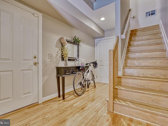 What a great opportunity to own this wonderful home which is nestled in The Cambridge Walk Community. Enjoy your 12X20 Rooftop Terrace which has beautiful skyline and water views and is off of your extra top floor room which could be another bedroom, office or bonus room. This exquisite home offers a two car garage and large storage room on the entry level. The entry/ground level has an open area in the back of the home with two large planting beds. All windows and sliders have been replaced with top of the line Andersen Renewal Windows that keep out City sounds. They even have screens which have the finest mesh available, keeping out dust and giving you great views. There are 10 foot ceilings with lots of natural light coming in due to the high ceilings and large windows. The Main Floor has an open floor plan concept and powder room, which is great for entertaining. Kitchen has a breakfast bar, granite countertops, and stainless steel appliances. Off of the kitchen/breakfast area is your covered porch. Separate Dining area and Living Room with gas fireplace for those cozy evenings. Upper Level offers a Primary suite with 20 foot ceilings, ceiling fan, closet organizers. Enjoy your remodeled private bath with a tiled shower and separate bathtub. There is also another full bath and bedroom on the upper level. For your convenience the laundry room is also on the upper level. Custom wood flooring in the staircase leading from bedroom level to top level. Home has dual heating and air. All air ducts have been professionally cleaned and sanitized. Gas fireplace has also been professionally cleaned. This home has been meticulously maintained. Everything is all ready for you to move in. The HOA fees in Cambridge Walk are considerably lower than comparable homes in the area (monthly fees elsewhere in the immediate area are the bi-annual amount for this home). This fantastic home is conveniently located on the Canton/Fells Point Border for a short walk to Patterson Park, Canton Square, Fells Point and the Inner Harbor Promenade.