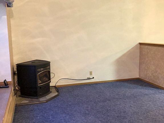 - Interior Features: Flooring- Linoleum, Pellet Stove, Ceiling Fan(s), Blinds