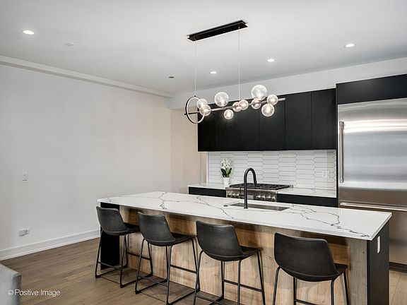 Discover the epitome of new construction living in this 2022 built three-bedroom, two-bathroom West Lincoln Park home offering all the details you love about new construction without the added stress. Smart floor plan engineered to meet modern desires for flowing, multi-use spaces. The entry features a large coat closet and all newer mechanicals. As you continue down the entry hall, the home opens to reveal the sophisticated Thermador chef's kitchen adorned with imported KAM cabinetry, featuring magazine worthy matte-black uppers and an exquisite wood-tone island accent. French doors connect the living area to a rare 20x13 attached veranda, providing a true extension of the interior space creating an idyllic getaway for hosting memorable gatherings or savoring tranquil tree-top views during a romantic evening in. The primary suite, located at the rear of the home, includes two custom walk-in closets. The attached spa-inspired bath features dual vanities and a steam shower. Two additional bedrooms with generous closets and a full guest bathroom complete the layout. Positioned on Elston Court, an inner drive of private residences off Elston Avenue, the home offers a quiet setting with close proximity to Bucktown shops, Lincoln Park boutiques, endless dining options, Midtown Athletic Club down the street, and grocery stores including Marianos, Fresh Thyme, Jewel, and Costco practically at your doorstep. Garage parking with easy in/out access is included. Transportation is convenient with nearby bus routes, the Clybourn Metra, Damen Blue Line, Fullerton Red/Brown Line, and direct access to I-90/94. In less than 20 minutes you can reach almost anywhere in the city, making this home a rare blend of space, style, and unparalleled centrality in one of Chicago's most sought after neighborhoods!