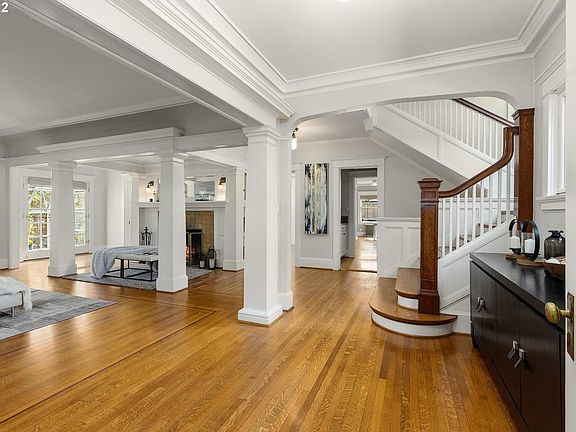 Grand Irvington Foursquare on an oversized lot. This home features 6 bedrooms, 4.5 baths, beautiful formal living room with wood burning fireplace, formal dining room, huge kitchen with eating area, light filled sunroom, primary suite with walk-in closet, finished basement with family room and bar. Outside enjoy the 90x100 lot with plenty of off street parking, heated oversized garage, massive front porch with outdoor heaters, large yard, deck and hardscape seating area. Newer mechanics and AC.