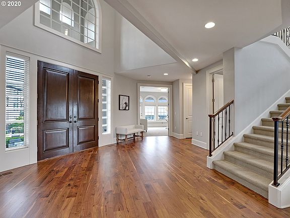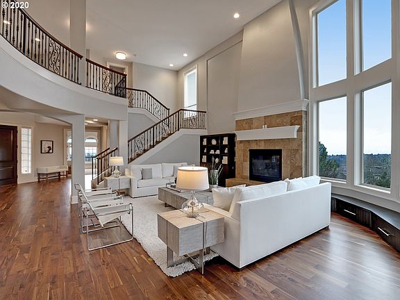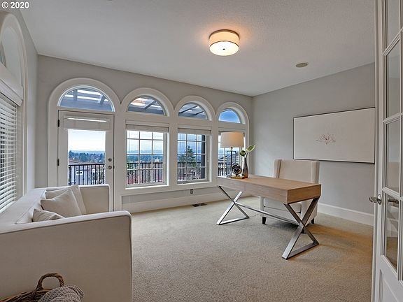 Modern Mediterranean Great Rm Estate Atop Forest Heights! Enjoy captivating sunrises from your front patio & sunset/coast range views from your back patio overlooking your private level yard & green space. 3 En-suite Bedrooms, stunning open floor plan, walls of windows, hi-ceilings, & beautifully refin. walnut floors. Inviting library opens to pergola patio with sweeping valley views, master suite enjoys spa like bath and private patio, & rec room along with 4th bed & bath is ideal for guests [Home Energy Score = 1. HES Report at https://rpt.greenbuildingregistry.com/hes/OR10141904]