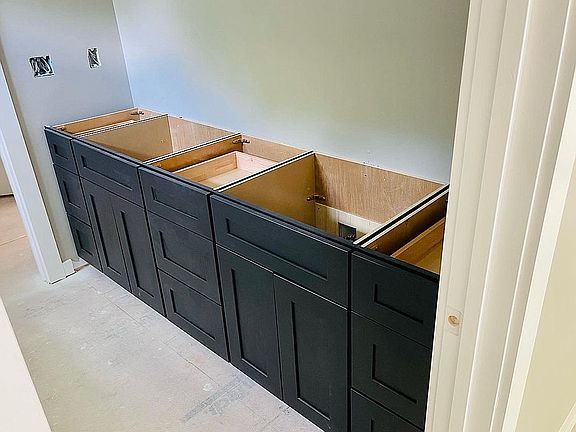 Soft close solid wood cabinets with full extension drawers and granite countertops in kitchen and baths