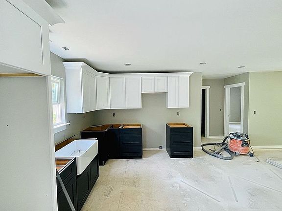 Cabinet extras in kitchen includes trash can pull out, big drawers and corner lazy susan