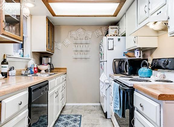 Popular west side location and complex. This Ground floor 2 bedroom corner unit is on the south west edge of the complex so it has great mountain views. The Master bedroom includes 2 closets and has unobstructed mountain views from the windows. Bedroom 2 has french doors and currently being used as an office. Could easily be turned back into a second bedroom. Full bathroom with vanity area. Laundry room near the kitchen. A little TLC and updating could make this place really cute. Will be sold as-is. There are some drywall cracks and the floor is not level. You will want to do your own inspections. HOA fees include trash and water. Use of one assigned parking space comes with ownership. Easy access to the nearby local park and nearby shopping center. Convenient to the bus line.