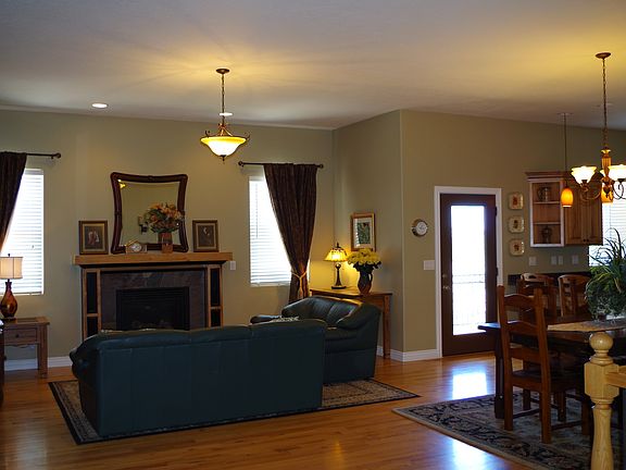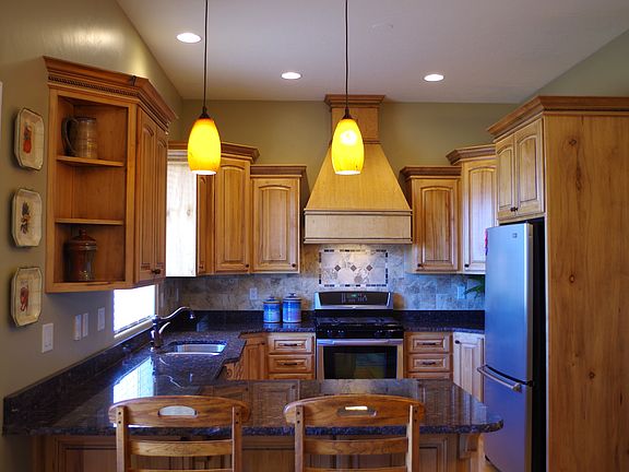 This extraordinarily beautiful custom home is perfect for any family or entertaining. Main level includes beautiful slate entry with plantation shutters, large master and guest bedrooms with Jack and Jill bath connecting guest room with large den; gorgeous cabinets and granite counters in kitchen, laundry and all main floor bathrooms; open floor plan with 10 ft ceilings; deck off kitchen with breathtaking sunset views; slate and wood gas fireplace perfect for cold winter days; walkout/daylight basement level is finished with two large guest bedrooms, full bath, dining room, cool food storage room, 2nd large storage room and plumbing for kitchenette. Lg bsmt living room leads to private backyard, perfect for entertaining. Complete landscaping and 3 car garage.