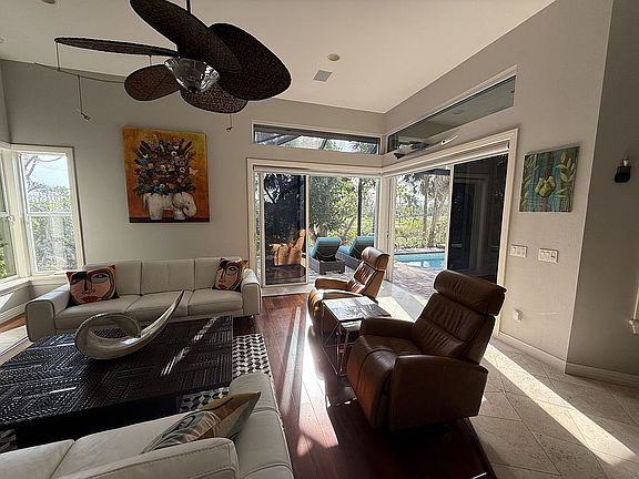 Step Into Your Own Piece of Paradise in the most prestigious neighborhood on Sanibel Island You will quickly see why we fell in love with this home the moment you walk through the front doors of this unique contemporary home that stayed on the market only a few days that last time it was offered. It’s the design. Over 50 feet of pocket doors and sliders open this home up to the natural night of the Florida sun, enclosed by a brand-new panoramic no-see-em lanai (you’ll thank us later). We kept the doors open pretty much the entire season and you will instantly see why. The walk-in master closet design will blow you away, as will the 36 sq. foot shower (not a typo). The huge 2nd floor bonus room was added on for a world-renowned artist that is now a very special office with quite a collection (sorry it leaves with us). The previous owners before us raved about this home as did the owners before them, who we both had over for dinner (yes, the house is really that good to have its own alumni of delighted dwellers).