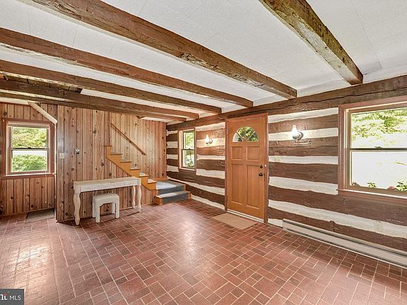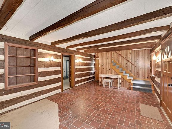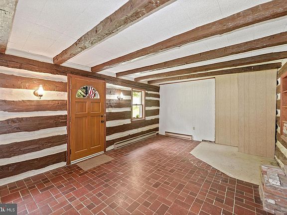 Beautiful log cabin, built in 1884, sited on 8.6 sprawling acres with trees and a fresh water spring, boasts updates including a NEW water heater, deck, baths, and more! Hand hewn logs and exposed wood beam ceilings highlight the original front room offering built-in bookshelves, and antique wall sconces. The kitchen features wood cabinets, and a stainless refrigerator with a water dispenser and icemaker, and a wall cutout looking into the living room surrounded by windows for breathtaking views, allowing abundant natural light, and offers sliding door access to the enclosed porch. An updated full bath is conveniently located on the main level. Two sizable bedrooms and a beautifully remodeled full bath with LVP flooring, bluetooth speakers and nightlight, complete the upper level. Original stone from the property accents the walls in the walkout lower level that offers 8 ft. ceiling height, a wood-burning stove, abundant storage, and access to the garage and outside. Enjoy persimmons, blackberries, mature shade trees, and outdoor living on the recently installed wood deck offering picturesque views, with a stone chimenea in a fenced area, plus a horse barn, and storage sheds. There's a 1 car garage and a turn-around, covered parking pad for added convenience. Just off of I-70 and US Route 15 for easy commuter access to Baltimore, and Washington DC. Catoctin Mountain Park, Cunningham Falls and Greenbriar State Parks provide abundant outdoor recreation. Washington County is rich in history, with nearby Boonsboro and Hagerstown offering many shopping, dining, and entertainment options. This one of a kind home won't last!