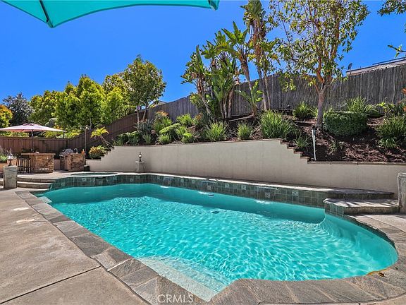 This beautiful home is situated in Montecito Ranch in Corona, CA. Featuring 6 bedrooms, 4 full baths, 3 car garage and POOL/SPA. A gated private courtyard leads you to the entrance of the home. There is a main floor bedroom that is tucked away and could work perfectly as a guest room, in-law quarters, office, or it would even make a great room to rent out since it is so secluded from the rest of the home. There is one full bath located downstairs next to main level bedroom. A beautiful foyer welcomes you into the home with cathedral ceilings and custom tile flooring, as well as newly installed luxury vinyl flooring. There is a formal dining area to your right and a formal living area in the center of the home. The kitchen is a chef's dream, featuring a 9x6 kitchen island, double oven, wine/beverage fridge, walk in pantry, nice sized butlers pantry, and plenty of cabinets for storage. The kitchen opens to the family room, which features a beautiful gas/wood burning fireplace. Upstairs you will encounter spacious bedrooms. The primary bedroom features windows that overlook the private pool in the backyard, a large walk in closet, and a private bath with a large jetted tub, and separate shower, dual sinks and vanity. There is a hall bath that can be shared by three of the secondary bedrooms, and one room features its own private bath. Makes a great teen suite! There is built in surround sound throughout the home as well. The backyard features a glimmering pool and in ground spa, a newly installed spa heater, gorgeous landscaping on the hillside, with the rest of the backyard being fully concreted. Works great for easy maintenance and provides plenty of room for poolside furnishings. There is also a built in BBQ that makes entertaining easy and so much fun. The home also has newly installed solar panels that are owned, and HVAC with dual AC units was installed just under two years ago. This home has so much to offer!! The HOA includes a park and community citrus grove! Zoned for Temescal Valley Elementary, El Cerrito Middle School, and Santiago High School. Just minutes to Glen Ivy Day Sa, Glen Ivy Golf Club, Dos Lagos Shops, Restaurants, and movie theater too!