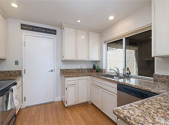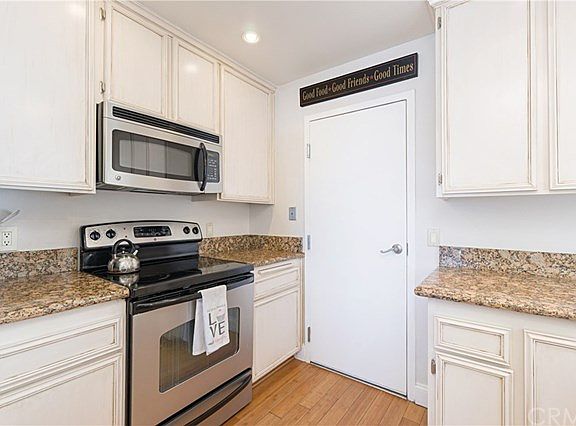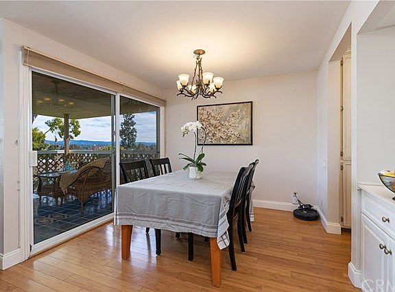 Wonderful Views of Saddleback Mountains & City Lights!! Private, End Unit with large grassy area directly across home. Adorable 2 bedroom, 1.5 Bath, 1,041 sq. ft. living space. Remodeled Half Bath and remodeled Master Bedroom Bath with new flooring. Mirrored closet doors in both bedrooms. Remodeled kitchen with direct garage access. Bamboo wood floors all upstairs, beautiful brand new carpet on stairs and bedrooms. Newly painted interior. Enclosed Balcony with tiled floor, enjoy mountain views! Home is light and bright with open living space.