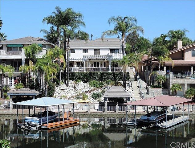 Come enjoy the good life and all waterfront living offers, Fish-swim and boat from your own covered dock with boat hydrolift, located in a secluded cove off the main channel of the east bay. This updated turn key home enjoys a southeast facing rear yard allowing afternoon shade for entertaining on the 2 level large slab patio's, ideal for large gatherings or just relaxing in the sun. A smart plan kitchen with stone counters and newer cabinets, formal dining room, open living room with feature fireplace. The upstairs master offers panoramic lake and hill views. 2 spacious guest bedrooms and 2 1/2 bathrooms, 2 car garage. Vacation in your own back yard, more than 12 parks and beaches, water skiing, tennis, golf, basket ball, equestrian and more inside the gate guarded private community of Canyon Lake. Low Taxes and no Mello Roo's is a bonus.