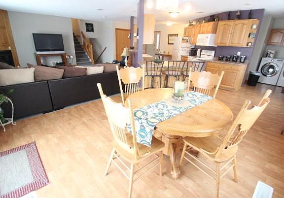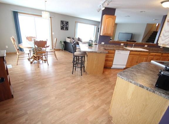 Newer Home in the country on 6+ acres with large kitchen/dining/living rm, master suite with whirlpool & WIC, main floor laundry, in-floor heating & heat pump for cheaper utilities, walk-out LL with wet bar, and covered patio, great views and location