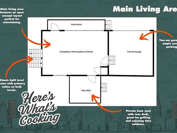 Two-car garageSpacious islandSliding french doorsLarge walk-in closetSleek stainless-steel appliancesDownstairs retreatOpen-concept kitchen