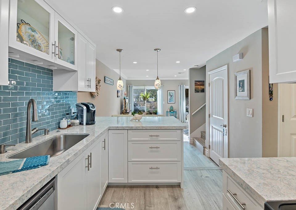 ***JUST REDUCED!!***IMPECCABLY REMODELED 2 BEDROOM 2.5 BATH TOWNHOUSE (END-UNIT) IN THE HIGHLY SOUGHT-AFTER COMMUNITY OF LA COSTA CASA GRANDE!***TWO MASTER SUITES!!***TURNKEY PROPERTY - JUST MOVE IN!***THIS HOME FEELS LIKE IT SHOULD BE ON HGTV - IMPRESSIVELY UPDATED WITH A CUTE COASTAL BEACH THEME THRU-OUT!***LIVE AFFORDABLY JUST MINUTES FROM THE BEACH!***ONE ASSIGNED PRIME PARKING SPOT with 2 Storage Cabainets in a Detached Shared Covered Garage & Ample Guest Parking Outside! Over $60,000 in Upgrades In Just the Last 3 Years! Improvements Include: Luxury Vinyl Plank Flooring Thru-Out, Multi-Tone Designer Paint, Recessed Lighting in All Rooms, Colonial Doors, Dual-Pane Windows/Sliders, Framed Windows-Doors-Sliders, Window Coverings, Big 6" Baseboards, Crown Molding, Gas Lines Run to BOTH the Stove & Dryer (Gas & Electric Option for Stove & Laundry), HVAC System Replaced and HOA Replaced the Roof Recently! The Quaint Kitchen Comprises Soft-Close White Shaker Cabinetry with Lazy Susan, Walk-In Pantry, 3-Stool Breakfast Bar Serve-Thru, High-End Cambria Quartz Counters, Accent Subway Back Splash, Pendant Lighting, Large Single-Basin Stainless Sink/Faucet and the Full Complement of Stainless Appliances (Frig Stays). The Kitchen flows into the Eating Area and the Adjacent Spacious Family Room with Under-Stairs Storage and 2 Sliders out to the Patio. The Large 18' Patio Feels Like you are onsite at Disney's Tiki Room complete with River Reed Privacy Fencing, Party Lights and Water Fountain! Rounding out the Downstairs is the Guest Half-Bath as well as an Enclosed Indoor Laundry (Washer/Dryer Stay)! Moving Upstairs you will be Pleased to see TWO Master Suites! The Larger Master at the Back of the Home Includes 2 Closets (Connected L Shape) and a Full Bath with a Roman Shower/Tub Combo. The Real Gem of this Master Suite is the Slider out to your own Private Covered Balcony with Durable Trex Decking overlooking the Pool Area (well set back off the pool). Relax and Watch the Sun Set while Family and Friends Frolic in the Pool! The 2nd Master Suite at the Front of the House is Adorned with the Most Gorgeous Updated Master Bath which Includes a Shaker Sink with Marble Sink Top and Themed Back Splash, Hexagon Floor Tile, Elongated Comfort Toilet and an Ultra-Modern Walk-In Shower with Seat and Marbled Wall Tile with Glass-Bead Accents! So Much to Do Here Just Minutes from the Beach! Enjoy Swimming in the Pool, Relax in the Spa & Watch Endless Sunsets on the Horizon!