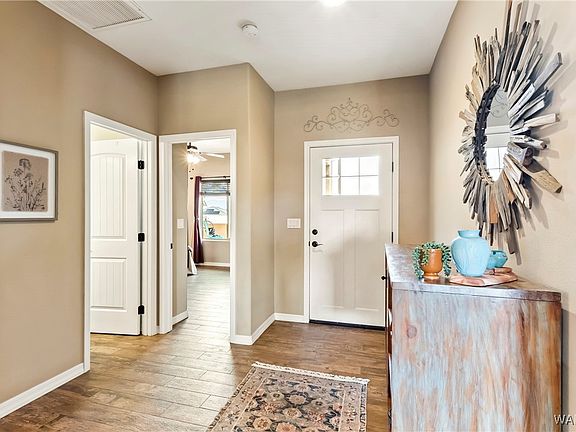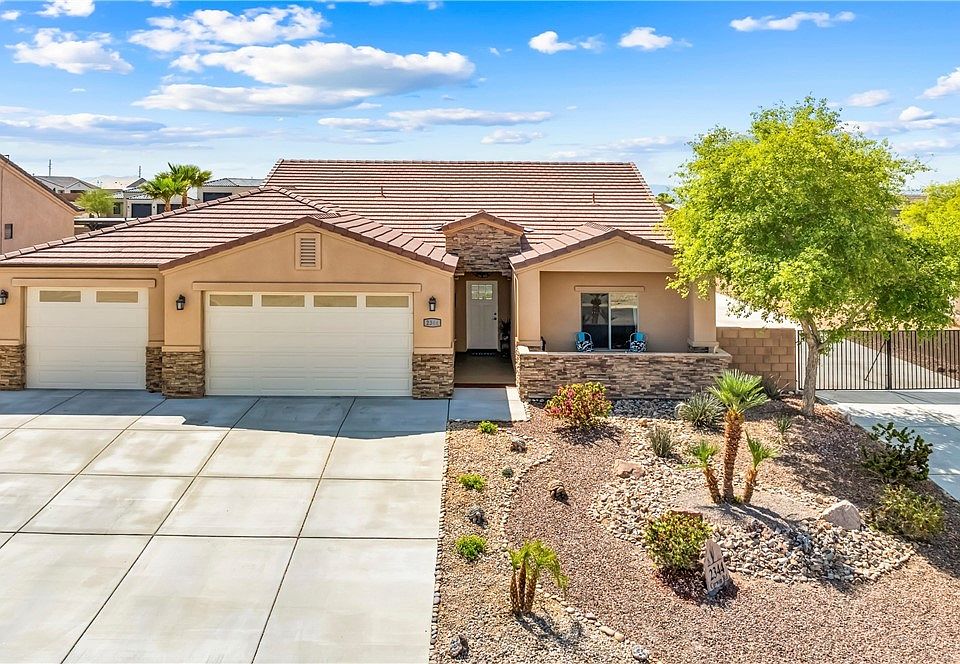Say hello to 2344 Corwin Rd - the kind of home that makes you say "YES!" before you even hit the front door. Built in 2015 by Henderson Construction and lovingly maintained by its one and only owners, this fully furnished beauty is tucked into the highly desirable (and delightfully HOA-free) Arroyo Vista Heights in Bullhead City. Sitting on a roomy 11,325 sq ft lot, it s got everything you never knew you needed and then some RV hookups? Yup. Dump station? Oh yeah. Gunite pool with a baja ledge, spa, propane heated, rock waterfall and spillover from the spa into the pool? Absolutely. This place is more than a house it's a vacation waiting to happen. Step inside and you re greeted by 1,778 sq ft of airy, stylish living space with a split floorplan that just gets it. The kitchen is showing off with granite counters, quality wood cabinets, stainless steel appliances, a breakfast bar, a big ol pantry, and even a coffee bar because, let's be honest, caffeine is non-negotiable. There's a casual dining area, tile plank flooring throughout (zero carpet drama here), and TWO sliding glass doors leading you to your private desert paradise. The primary suite is no slouch either - think walk-in closet, dual sinks, a tiled walk-in shower, and room to stretch out and breathe. Laundry room? Yep, with washer & dryer included because we like to make things easy. Out back, the fun continues with multiple patio sets, a covered sitting area, a gazebo, a Blackstone grill for your burger-flipping pleasure, an outdoor shower, and an umbrella set perfectly by the pool for peak lounging. Got toys? Bring 'em. With boat parking, RV parking, a air conditioned 3-car garage with 8' doors and a 50' deep bay, plus wide concrete along the side with a gate, you're good to go. Minutes from desert trails and the Colorado River, it's a dream basecamp for adventure lovers. This home is turn-key, staged to impress, short-term rental ready, and 100% drama-free - just pack a bag and move right in. It checks all the boxes, fills in the blanks, and throws in a few exclamation points just for fun. No compromises, no waiting - 2344 Corwin is priced to sell and ready to be your next favorite place.