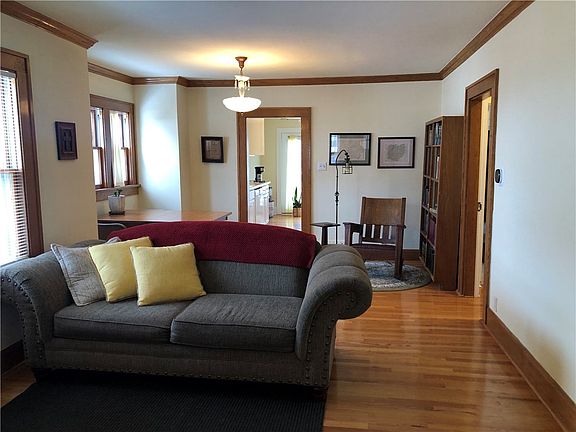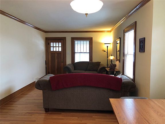 Charming move in ready home! You will enter the home by the enclosed front porch, then into the spacious living room with hardwood floors which opens to the dining area(if you wish to use it that way). There is beautiful oak floors and wide woodwork. Off to the side are 2 nice sized bedrooms and a full bath with tile floor. Towards the back of the home is the white kitchen with abundance of cabinets & a pantry plus there is room for a table. All the kitchen appliances are included. There is a deck out the back door off the kitchen that overlooks the backyard. Downstairs is a new bedroom with a walk-in closet and a beautiful new bathroom. The exterior walk-out door is in the bedroom. Laundry hook-ups and storage are also in the lower level. The lower level is a walk out to the backyard where you 'll find a one car garage. This home is just waiting for your personal touch!
