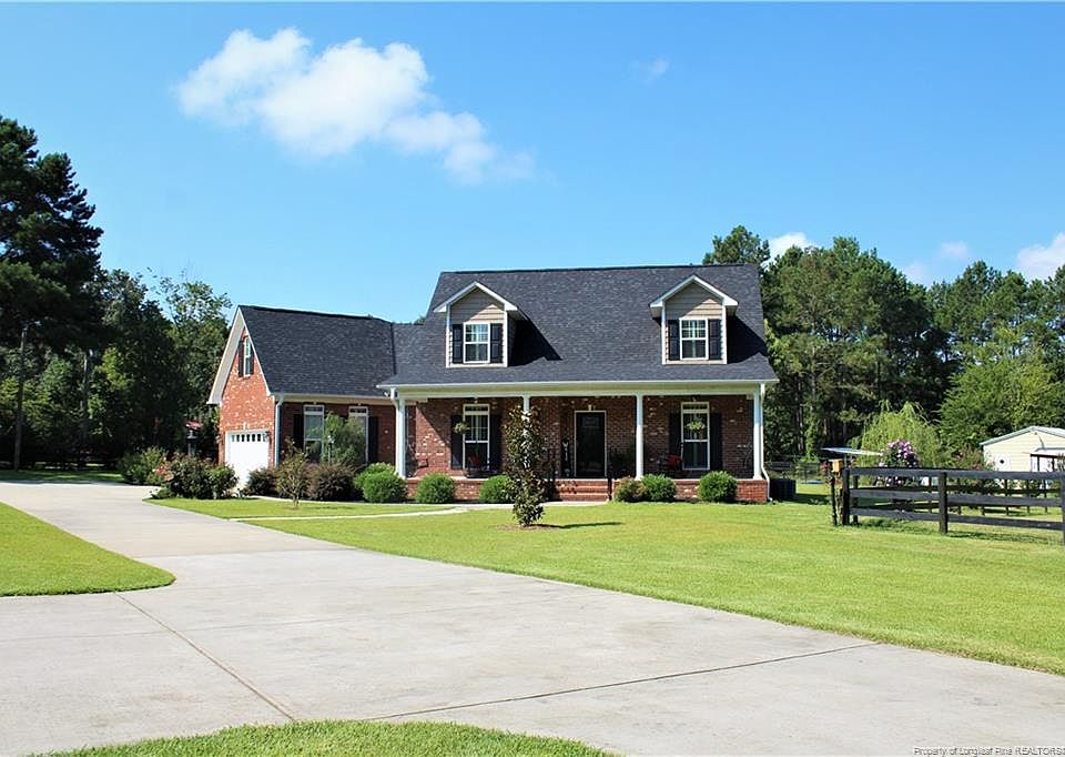Amazing 2017 all brick custom built home sitting on 2.25 ac is like a piece of heaven. Entry way greets you with hardwood floors throughout the home except laundry/has tile. Stunning kitchen with large Island, custom cabinets, farmhouse sink, double oven, 3 1/2 plantation shutters throughout the home. Master bedroom is downstairs and the master bath is like a day at the spa!! 2 guest bedrooms and full bath are upstairs with a great area for kids to play or office area. Detached wired workshop, Horse barn with stables, separate fenced kennel area for dogs, screened back porch with extended patio and firepit for cool nights. The landscaping is breathtaking. Sodded with Irrigation in front and back yard, grape vines, garden. Soooo much more. Great schools and only mins to I95 or Hwy 87. Downtown is only 15 mins away and Ft Bragg is 25 mins away. You need to see it to believe it.