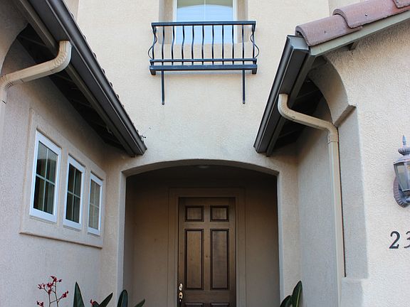 This is a 6 bedroom, 3 full bath, 2 story home on a cul-de-sac, 3 miles from the beach. House sits on a hill with west-facing, sunset and ocean views. Master bedroom with Pella french doors that open onto a large sun deck. Beautiful, built-in home office with 2 desks and floor to ceiling cabinets and bookshelf. Crown molding, trimmed windows, and baseboards throughout. Living room with cathedral ceiling. Pella french doors off the living room that open to a quaint side patio with fountain. Upgraded backyard with BBQ island, sink, and refrigerator. Gas fire pit and fire bowls surround an Endless Pools swim spa that can be used as an exercise pool or large hot tub. Large, OWNED, 7 kW solar system. OWNED water softener system. Carlsbad Unified School District. Low HOA fees and no mello roos.