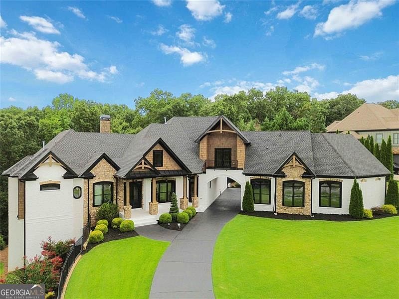 In prestigious Chateau Elan. The grand open foyer welcomes you into the cathedral beamed living room, Modern open concept great for entertaining & outdoor veranda. New kitchen w/huge walk-in pantry complete with plenty of modern touches. Master on main oversize master bath w/soaking tub & custom tiled over sized shower. full finish Basement has a 2nd kitchen, movie theater , media room & patio. a unique room to make it your own . 3 car garage + garage and a half below for golf cars . Quartz counter tops throughout. Move in ready. is a Must see, Enjoy great amenities in this very secluded private community , swim, tennis & golf community, and much more !
