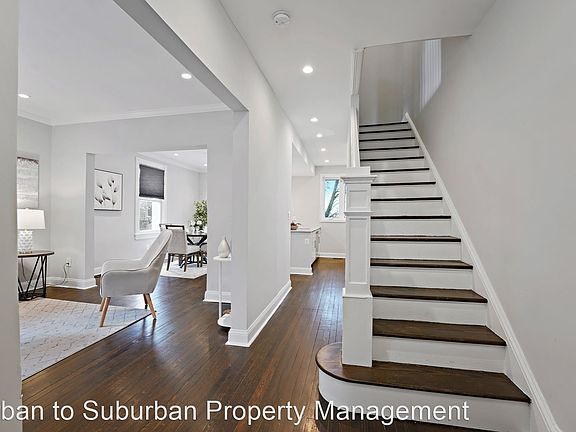 Beautifully renovated 3-level home inclusive of basement (with rear exterior walkout). Renovation completed in August 2015 including preservation of original heart of pine hardwood floors on main level and second level. Complete transformation of interior elements to open floor-plan with contemporary white cabinets, stainless appliances/finishes, huge island that doubles as breakfast bar, addition of double-door with transom to huge deck. Updated second level with 2 large masters and one small nursery room/office (all with dedicated closets) and gut-renovated full bath. Basement includes additional full-size bedroom with dedicated closet and Jack-and-Jill bathroom leading to bonus activity/family room all atop contemporary 18" tile. All new plumbing, sump ejector and new HVAC (Carrier Performance Series) installed during reno. Rear exit leads to large fenced in yard with dedicated off-street parking.