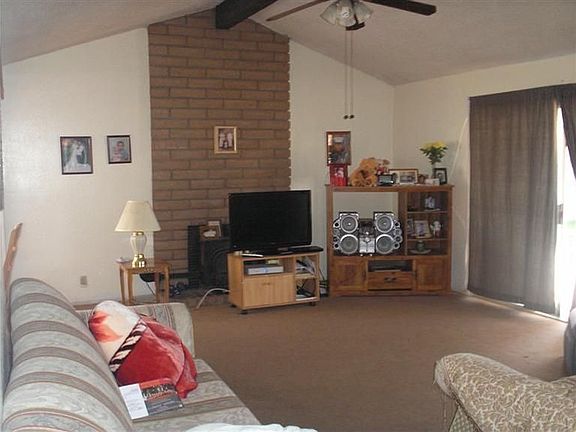 Corner house with chain link fence, 3bd/2ba, vaulted ceiling in living room, open floor plan, automatic garage door, covered patio on concrete.