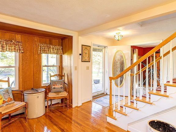 Beautifully renovated farm house on 2.8 acres just outside Staunton City limits. This Country Charmer is sure to please with many ways to enjoy the outdoors. This home offers a kidney shape 16x30 fresh water in-ground pool, covered rear patio, deck around the pool with a gazebo and fire pit. Covered front porch overlooks the gently rolling vistas. A 10x20 shed with 220 amp electricity that was once used as an alteration shop. Asphalt driveway leads to the 3-car detached garage with 220 amp electricity and a RV hook up on the rear side with asphalt parking. The interior offers a renovated kitchen with custom oak cabinets, butcher block counter tops, new LG stainless steel appliances, Oak and Heart Pine hardwood floors that were recently redone, ceramic tile floors with radiant heat, two bathrooms remodeled, and much more! The home offers two HVAC systems with one recently replaced. radiator baseboard heat throughout. An assortment of grapes, apple trees, hop, blackberry and raspberry plants included in the landscaping. Septic tank was pumped last year by Campbell's Septic Tank Services.