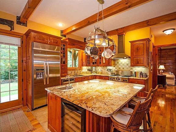 You will love the Pristine National Park-like Setting of this private estate. Custom built by builders as their own home. This is a perfect residence, second home or overnight rental that pays for itself and more. The large yard is flat and covered in our great rare hemlocks, as well as oaks and maples; you can see through the mature forest the ridges of mountains in the distance. The Mountain Craftsman Style cedar shake, board and batten lodge is unique, upscale and full of quality surprises! Open floor plan is anchored by a handsome generous mountain stone fireplace. Custom Cherry cabinets, solid pine beams with black wrought iron supports, gleaming hickory flooring as well as slate, travertine marble are just some of the features that make this lodge as good as it gets! Kitchen is designed to please even a gourmet cook, Kitchen-Aide built in frig, large high end gas range/electric oven and wine cooler. Granite island means the cook doesn't have to work alone. This house lives well! Light and airy, almost like you are living outside due to the walls of glass and high ceilings throughout. High quality over-sized windows, no expense is spared whether it is a transom, amazing 8'designer window in the master or the vaulted ceiling in the sunroom. Master bath is a delight with a claw foot tub, tile shower and his and hers granite and cherry custom vanities. All bedrooms are spacious and have tree top views. The upstairs has a large gathering, recreation area with two bedroom suites. Lots of closets and storage throughout. The downstairs is a home of its own. Would be perfect for two families on vacation or a separate apartment for whoever might enjoy their own kitchen, living room, bath and bedroom! Tall ceilings and beautiful finishes make this downstairs a treat of its own. Terrace exit is still high above the valley below, where you can enjoy the deluxe hot tub. 1.33 acres on double lot. Perfect! Ask for the detailed list of upgrades. More lots available!