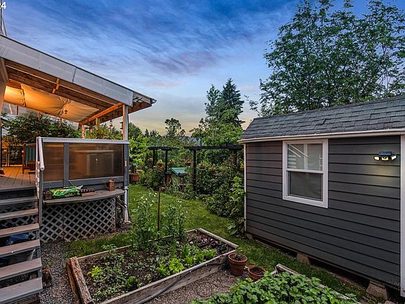 Welcome to this charming two-story home in the heart of Sherwood, featuring an open-plan living area with high ceilings that flows into the dining room and kitchen adorned with granite countertops and hardwood bamboo flooring. The downstairs includes a convenient laundry room and half bath, while upstairs boasts a primary bedroom with an ensuite bathroom and walk-in closets in both the primary and secondary bedrooms. Recent upgrades include a new roof in 2021 and a durable Hardie-plank exterior. The large covered deck offers outstanding views of the terraced backyard, complete with trellises, irrigated hanging baskets, and raised garden beds. Additional highlights include a fully insulated shed, perfect for an office or extra storage, and beautifully landscaped front and backyards. Located just minutes from historic downtown Sherwood and local schools, this home is nestled on a quiet, low-traffic street in a family-friendly neighborhood with no HOA.