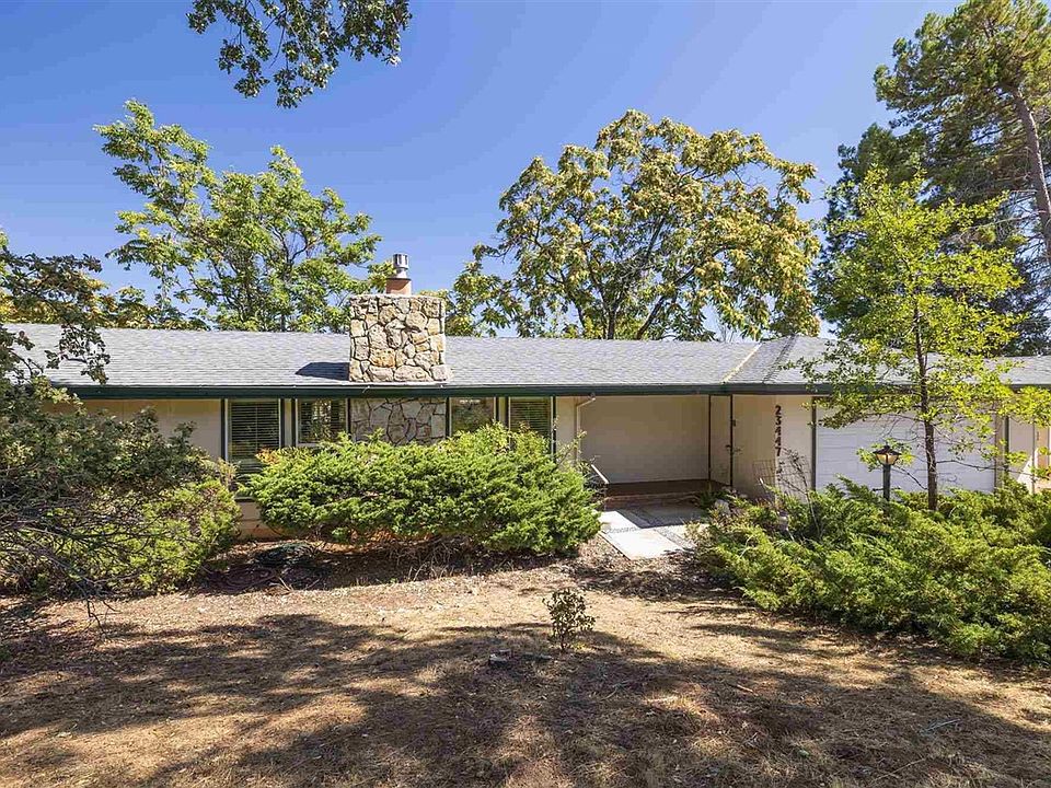 Charming single-story home in the desirable Gold Springs Ranch community. Nestled on approximately 1.26 acres and backing up to the community pond, this home offers a tranquil setting with wonderful views. Step inside and be greeted by the warm and inviting living room and dining area, where large windows and a slider bring the view indoors. The laminate flooring contrasts with the painted white wood ceiling and the fireplace has a classic feel with its floor-to-ceiling rock surround and hearth. The kitchen features fresh white cabinetry and updated granite countertops. The master bedroom has an attached bathroom and a slider that leads to the deck, allowing you to enjoy your morning coffee while taking in the natural beauty that surrounds you. Two additional bedrooms provide ample space for family or guests, while another bathroom offers convenience for all. The laundry area is in the attached 2 car garage. Outside, the covered deck is the ideal spot for alfresco dining or simply unwinding as you soak in the view. Below the deck, you'll find a natural yard that can be enjoyed as is or transformed into your dream backyard. Be sure to check out the 3D tour to fully appreciate all that this home has to offer and schedule your viewing today.