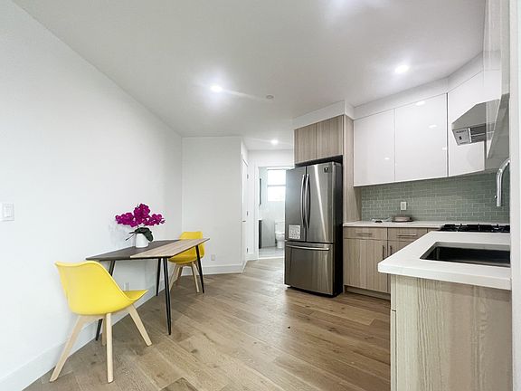 Discover your tranquil oasis in the heart of Mappleton, Brooklyn. This sun-drenched 1-bedroom condo offers a peaceful escape on the 4th floor. Enjoy open-concept living, a modern kitchen, and a private balcony with city views. Key Features: Prime Location: A block away from the subway and local amenities. Modern Comfort: Open layout, stainless steel appliances, and ample storage. Outdoor Oasis: Private balcony for relaxation and enjoyment. Convenience: In-unit washer/dryer and indoor parking available (rent separately). Community Living: Access to the rooftop terrace with stunning city views. Don't miss this opportunity to make this charming condo your new home. Broker fee applies.