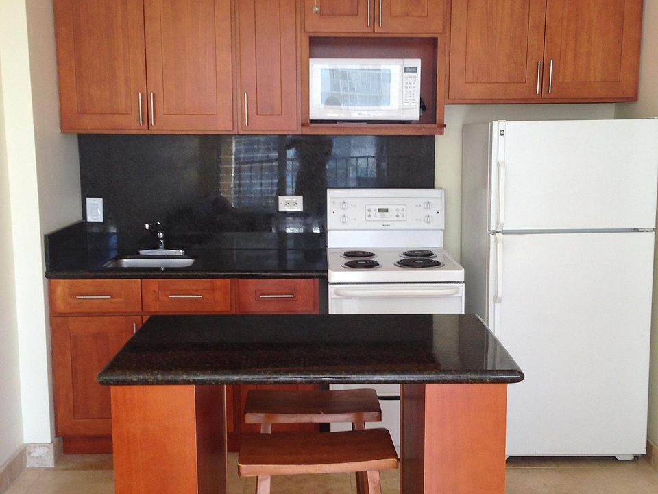 So easy - just move in! Fully furnished beautifully remodeled 364 sq. feet studio unit in popular Fairway Villa condominium with lanai and assigned parking stall. Cool side of the building. New luxury vinyl flooring, travertine flooring, refrigerator, stove, microwave, ceiling fan, granite countertops, cherry kitchen cabinets, island, sofa, murphy wall bed, travertine shower, washer and dryer, a/c, dishware, cookware, sheets, towels, and much more. Near International Marketplace. Unit includes water, internet and cable. Building has 24 hour security, bbq deck, pool, Jacuzzi and sauna. No pets or smoking. Rent is $1,800 per month (includes GET taxes). Maximum 2 people. Please call (leave message). Thanks. Electricity separate. Water, cable and internet included.