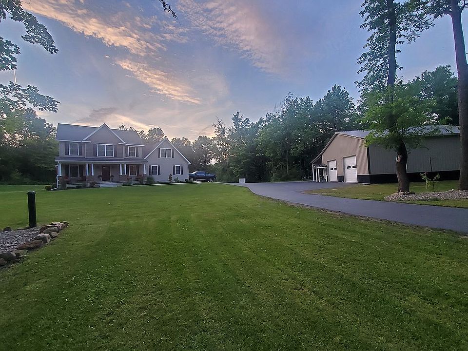 REWARDING ESCAPE PEACEFULLY SITUATED: Luxurious and upgraded, this 5 bedroom, 3 bathroom home of 2,665 sq. ft. rests on a lot of 23 acres. This secluded peaceful property is a great space to get away or entertain. Richly-appointed spaces include large gathering areas, a bright, professional-grade kitchen, spectacular dining room, master suite, and finished basement to turn into a home theater. The expansive backyard includes a sparkling pool, deck and outbuildings with private, verdant surroundings. Attached is a heated 3 stall garage to easily enter the home. A 40x40 pole-barn with concrete floors is a great addition to store your belongings. Centrally located, you’ll appreciate the short drive to New Hartford, Utica, or Ilion/Herkimer! Text message is preferred. (315-723-6650) Pre-approval letter is required to view the property.