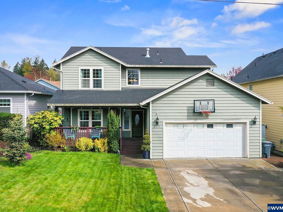 Desirable, level lot on a quiet street in W. Salem. Traditional 2-story home has a floor plan for entertaining. Family room, kitchen & dining area flow together easily. Gas fireplace in living room creates a comfortable ambiance. The kitchen boasts SS appliances, eat-in bar, garden window, & dining area with French doors to fenced backyard. Upstairs are 3 beds & 2 full baths, including Primary ensuite with walk in closet, soaking tub, dual sinks, & shower. 2-car garage has an office, plumbed with a sink.