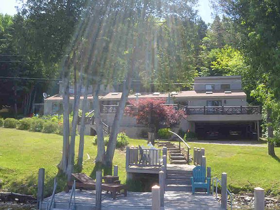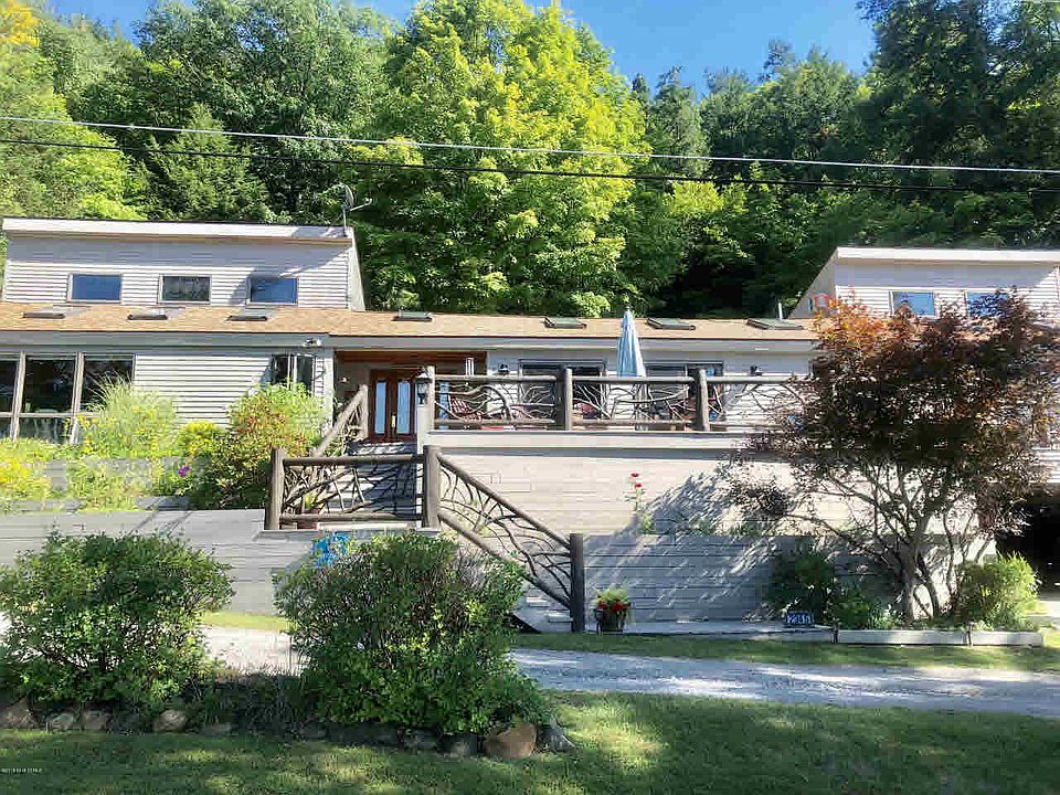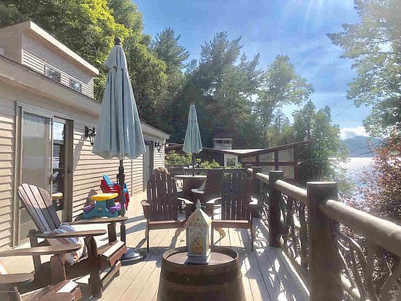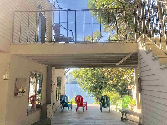 Fabulous views of Lake George and Rogers Rock from this home for a family! 2 large living areas! One with dining area with lake views, fireplace and lots of space. Sliders to deck/lakeviews. One off eat in kitchen with access to rear deck with terraced gardens. Carport for four plus cars! Room for everyone. Huge front and rear decks! Master bedroom with den /office/ nursery above. Private small deck off second floor bedroom. Storage in basement. generator. Year round use and sooo much more!