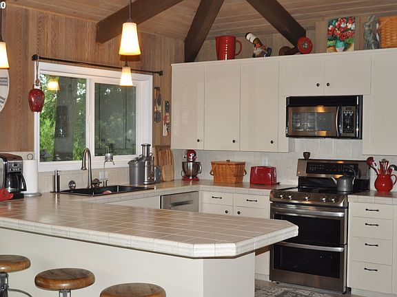Custom one-level home with a river view! Fantastic 3 bedroom, 2 bath home with an open floor plan and wonderful outdoor entertaining spaces. You'll find vaulted wood-beamed ceilings and a cozy wood burning fireplace. There is a tool shed and room to park an RV or toys. This home has been well maintained and features a new roof and updated stainless appliances. The sale of this home is contingent on the closing of a home identified and has a contract in place. Professional photos coming soon.