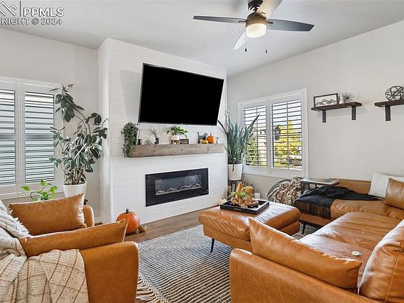 Like NO OTHER in the area!! Don't miss this FULLY remodeled, ONE OF A KIND, skillfully designed and beautifully lavish home in Spring Creek! This renovated, chic home boasts 4 bedrooms & 4 bath, gorgeous plantation shutters on main, both upper bathrooms have been gutted to create a spa-like retreat. The primary bedroom has received an elegant revamp with accent wall, walk- in closet, barn door to primary bathroom w/dual shower heads (MUST SEE!), custom cabinets/mirror/lighting, & designer tile flooring...PLUS your own personal deck to retreat to after a long day. The guest bath upstairs has been transformed into a perfect oasis with same designer tile flooring, custom cabinets/mirrors/lighting, & soaker tub. How about this, not just 1 - but 2 fireplaces for those cozy Colorado evenings. Custom wallpaper/designs in main level powder bath, shiplapped fireplace w/mantel in the living room, & quality custom paint designs. Laundry room also has same designer tile flooring & custom cabinets with hanging racks. The permitted finished basement w/half bath & huge walk-in closet has lots of storage & a projector with screen & fireplace. That's not all...the backyard was created for entertaining & relaxing. Unwind under the stars in the hot tub, pergola with outdoor lighting, fire pit & outdoor heater (negotiable) - low maintenance fully fenced yard with gate, Trex deck, large turf area, & outdoor fenced trash cubby. A ring system at the door and Blink security on the exterior will remain with the home as well. The garage has epoxy floors, SO MUCH custom storage & 2 garage remotes. Home humidifier tops off this impeccably designed home! Wow...how about being close to downtown, I-25, Colorado Springs airport, military bases, HWY24 to head up the pass, shopping, entertainment, & restaurants. And the annual Labor Day Lift Off with the hot air balloons goes right over the community each year! Reach out for more information and to schedule a private showing for this MUST SEE home!