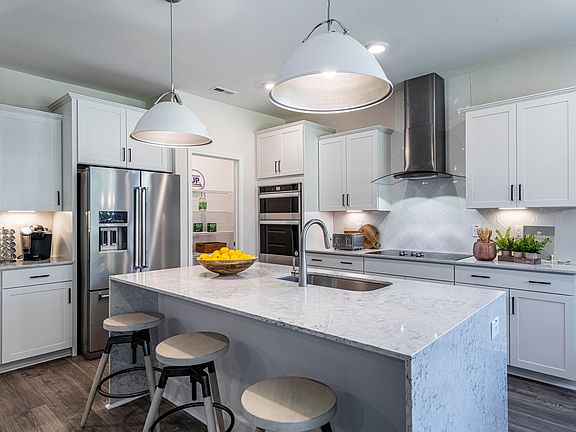 The Winston floorplan is a delightful ranch-style open floorplan featuring an office, owner's suite, and laundry on the first floor as well as a covered rear patio accessible from the living room and dining area. The modern kitchen boasts a large island fit for a chef that doubles as an eating bar with ample space for bar stools. The resort-style first floor owners bath features a dual-sink vanity, linen closet, and spacious shower. The bath leads into a huge walk-in closet with plenty of room for two wardrobes. The second floor includes a loft area, two bedrooms, and a full bath. Just minutes from downtown Fuquay Varina, Holston is a community you don't want to miss!