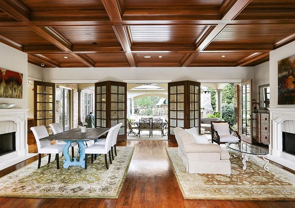 - Interior: Ceilings 9 Ft Plus, Double Vanity, Separate Shower, Bookcases, Garden Tub, Recently Renovated, Hardwood Floors, Exposed Beams