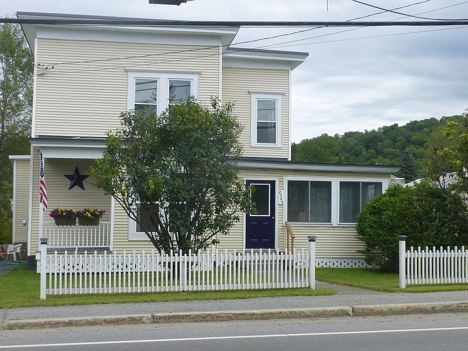Historic Home on Main Street, 3 Bedrooms, 2 Baths, 1,672 sq.ft. Numerous updates have been done over the past 6 months. Granite countertops in the newly remodeled eat-in kitchen which includes stove, refrigerator, dishwasher and microwave. Deck off the kitchen overlooks a lovely little brook which can also be enjoyed from the 3 season front porch. Hardwood floors downstairs, new carpet upstairs. Completely remodeled bathroom upstairs sports a double sink vanity. The wiring and plumbing has all been updated. House is ready to move into and become your home. I am a licensed real estate broker, a fact I am require to disclose. There is no listing broker involved, so there is no commission to be paid.
