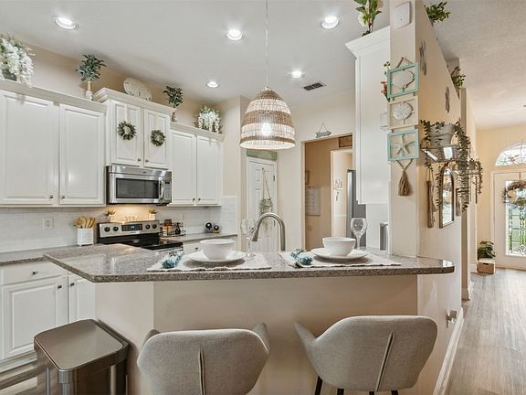 Welcome to your sanctuary in Kernan Lakes! This charming brick-faced home is nestled at the secluded end of a cul-de-sac, offering both tranquility & convenience. Minutes away from shopping centers & amenities, this residence provides the perfect blend of suburban peace and urban accessibility. Inside, you'll find modern comforts & elegant touches throughout. The kitchen boasts stainless steel appliances, ample cabinets, & granite countertops, complemented by an eat-in breakfast nook & a separate dining room. Additionally, there's a bonus room. Recently remodeled bathrooms, new vinyl plank flooring & new carpet in the bedrooms make this home feel like new. Step outside to discover your own private paradise - a screened-in lanai for summer evenings and a half basketball court for friendly games. The fully fenced backyard offers endless possibilities for gardening, exercising, or outdoor activities. With an irrigation system hooked up to a well, maintaining your lush lawn is a breeze.
