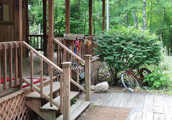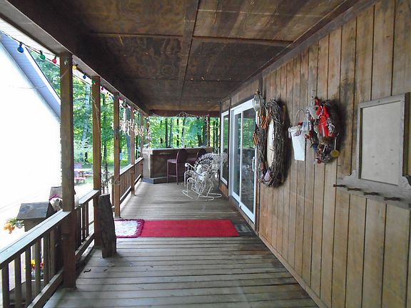 Take a peaceful walk on the many trails located throughout this 27-acre property adjacent to public land. Sit back and relax with nature on the 3/4 wraparound porch of this 3-bedroom 3 bath home with a full walk-out finished basement and if you need more room for guests, there is a camping cabin on the property. There is also a detached three-car garage with a one bay drive - through.