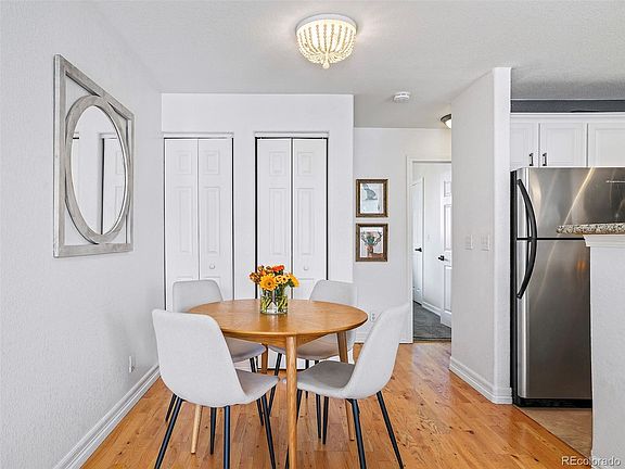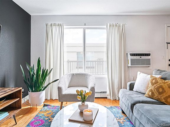 An updated, open floorplan unfurls in this ideally situated Jefferson Park hideaway. Real hardwood floors run underfoot in the brightly lit living room, illuminated by a vast picture window and emboldened by a gray accent wall. A dining area introduces the cozy kitchen that maximizes its use of space with painted kitchen cabinets and updated appliances. Fresh lighting crowns the ceilings for a warm and luminous atmosphere throughout. This home’s bedroom is a sunlit escape, with windows on two sides and a neutral color palette for added illumination. Storage is found in the commodious walk-in closet, ideal for multi-seasonal wardrobes. Updated plumbing fixtures are found in the bathroom, where earthy tile and a stone-capped vanity craft a soothing aura. An in-unit washer and dryer are included for added convenience for residents. Just three blocks to Red Top Rendezvous, Sexy Pizza and several other local retail & restaurant hot spots. Jefferson Park is central to many of Denver’s best sites, including the Downtown Aquarium, generous green spaces and nature trails, Empower Field and more.