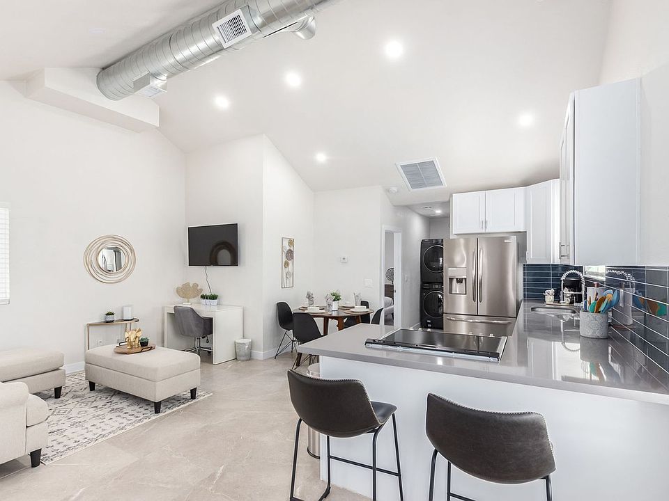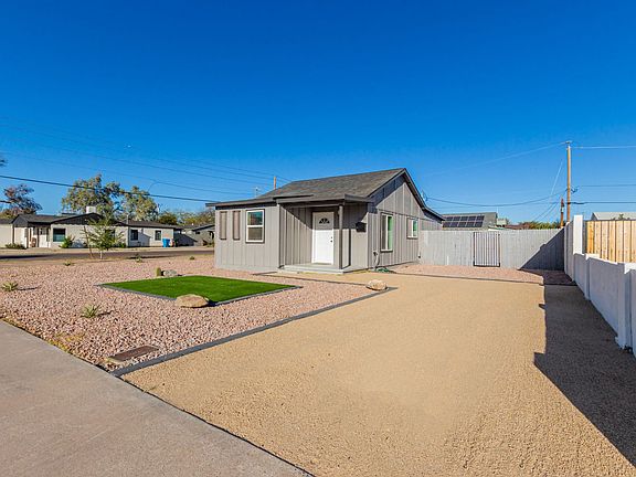 This charming 2-bedroom, 2-bathroom home is nestled within a historic district, offering a unique blend of character and modern convenience. Step inside to find a fully remodeled space with a great kitchen, perfect for preparing meals. The living area features a sofa with a chaise, a large TV, and a workspace with a desk, ideal for working from home. The split bedrooms provide privacy, with the master bedroom at the rear of the home featuring a king-sized bed, television, en-suite bath, and walk-in closet. The second bedroom, located at the front, includes a large closet and a twin daybed with a trundle, comfortably sleeping two. Enjoy the massive backyard accessible through the back door. The home also includes a washer and dryer and super-fast Wi-Fi, making it a perfect home away from home. The kitchen is fully equipped with everything needed to prepare a meal, and you can enjoy your culinary creations at the breakfast bar or in the kitchen nook. The living space is designed for relaxation and functionality, with a sofa, large TV, and a dedicated workspace for your laptop. While there is no garage, ample parking is available onsite, behind the gates, or in the driveway. Welcome to the Coronado neighborhood, a true community located in midtown Phoenix. This area covers over 1.75 square miles and includes around 4,000 households. The neighborhood is made up of three historic districts: Brentwood, Coronado, and Country Club Park, each offering a unique architectural style. Enjoy walking to nearby restaurants, bars, and shopping, or take advantage of the amenities at Coronado Park, which include lighted tennis courts, a shaded playground, grills, a swimming pool, and more. The neighborhood is centrally located with direct access to major freeways, the Phoenix downtown, central corridor, the arts district, the light rail line, and three major hospitals. This home is perfect for relocation, traveling nurses, or a getaway to the heart of Phoenix. There is no garage, but ample parking is available onsite. The living area doubles as a workspace, featuring a desk for working from home or a spot for your laptop. Super-fast Wi-Fi is available throughout the home.